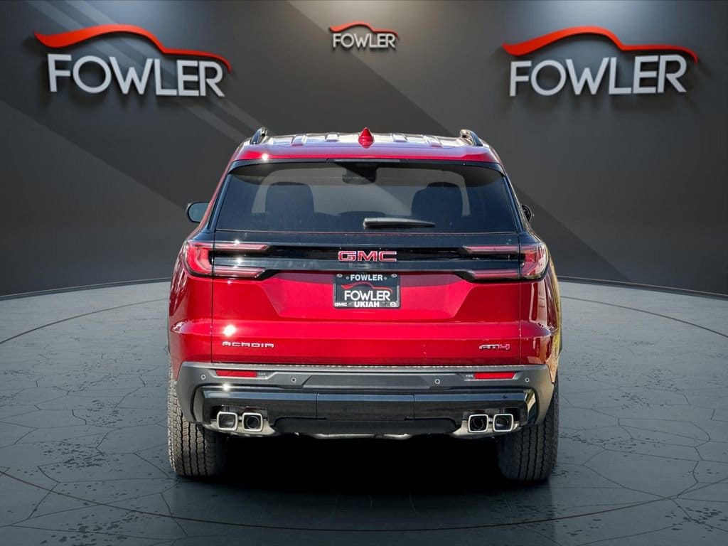 Volcanic Red Tintcoat 2026 GMC Acadia AT4 AWD 8-Speed Automatic 2.5L DOHC AWD, Forest Storm W/Mahogany Accents Cloth, 12 Speakers, 1st & 2nd Row All-Weather Floor Liner (LPO), 2-Way Driver Power Lumbar Seat Adjuster, 3.49 Final Drive Axle Ratio, 3rd Row All-Weather Floor Liner (LPO), 3rd row seats: split-bench, 4-Wheel Disc Brakes, 6-Way Power Front Passenger Seat Adjuster, 7-Passenger Seating (2-2-3 Seating Configuration), 8-Way Power Driver Seat Adjuster, ABS brakes, Air Conditioning, Alloy wheels, AM/FM radio: SiriusXM with 360L, Apple CarPlay/Android Auto, Auto High-beam Headlights, Auto-dimming Rear-View mirror, Automatic temperature control, Bodyside moldings, Bose Premium 12-Speaker System w/Sub-Woofer, Brake assist, Bumpers: body-color, Cloth/CoreTec Seat Trim, Compass, Delay-off headlights, Driver door bin, Driver vanity mirror, Dual front impact airbags, Dual front side impact airbags, Electronic Stability Control, Emergency communication system: OnStar Services capable, Exterior Parking Camera Rear, Floor Liner Package (LPO), Four wheel independent suspension, Front anti-roll bar, Front Bucket Seats, Front Center Armrest, Front dual zone A/C, Front fog lights, Front License Plate Bracket, Front Passenger Power Lumbar Seat Adjuster, Front reading lights, Fully automatic headlights, Garage door transmitter, Heated door mirrors, Heated Driver & Front Passenger Seats, Heated front seats, Heated steering wheel, Illuminated entry, Integrated Cargo Liner (LPO), Leather steering wheel, Low tire pressure warning, Navigation System, Occupant sensing airbag, Outside temperature display, Overhead airbag, Overhead console, Panic alarm, Passenger door bin, Passenger vanity mirror, Power door mirrors, Power driver seat, Power Liftgate, Power passenger seat, Power steering, Power windows, Preferred Equipment Group 4SB, Radio data system, Radio: 15 Premium GMC Infotainment System, Rear air conditioning, Rear anti-roll bar, Rear reading lights, Rear side impact airbag, Rear window defroster, Rear window wiper, Remote keyless entry, Security system, SiriusXM w/360L, Speed control, Speed-sensing steering, Split folding rear seat, Spoiler, Sport steering wheel, Steering wheel mounted audio controls, Tachometer, Telescoping steering wheel, Tilt steering wheel, Traction control, Trip computer, Turn signal indicator mirrors, Variably intermittent wipers, Voltmeter, Wheels: 18 x 8 Dark Machined Aluminum, AWD, Forest Storm W/Mahogany Accents Cloth.