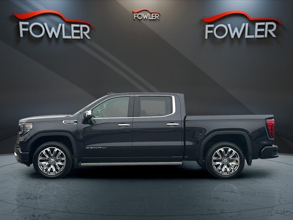 Titanium Rush Metallic 2026 GMC Sierra 1500 Denali 4WD 10-Speed Automatic EcoTec3 6.2L V8 10-Speed Automatic, 4WD, Jet Black Leather, 12-Way Power Driver Seat Adjuster w/Lumbar, 12-Way Power Passenger Seat Adjuster w/Lumbar, 120-Volt Bed Mounted Power Outlet, 120-Volt Interior Power Outlet, 170 Amp Alternator, 2 Charge/Data USB Ports Inside Center Console, 2 Type-C Charge-Only Rear USB Ports, 2 USB Ports, 3.23 Rear Axle Ratio, 4-Wheel Disc Brakes, 7 Speakers, ABS brakes, Adaptive suspension, Air Conditioning, Alloy wheels, AM/FM radio: SiriusXM with 360L, Apple CarPlay/Android Auto, Auto High-beam Headlights, Auto-dimming door mirrors, Auto-dimming Rear-View mirror, Auto-Locking Rear Differential, Automatic temperature control, Auxiliary External Transmission Oil Cooler, Bed View Camera, Brake assist, Buckle to Drive, Bumpers: body-color, Chrome Header w/Signature Denali Chrome Grille, Chrome Recovery Hooks, Chrome Wheel To Wheel Assist Steps, Color-Keyed Carpeting Floor Covering, Compass, Deep-Tinted Glass, Delay-off headlights, Denali Premium Suspension w/Adaptive Ride Control, Denali Reserve Super Package, Driver door bin, Driver Memory, Driver vanity mirror, Dual Active Exhaust, Dual front impact airbags, Dual front side impact airbags, Electric Rear-Window Defogger, Electronic Stability Control, Emergency communication system: OnStar, Enhanced Automatic Emergency Braking, Floor-Mounted Center Console, Following Distance Indicator, Forge Perforated Leather Seat Trim, Forward Collision Alert, Front anti-roll bar, Front Bucket Seats, Front Center Armrest, Front dual zone A/C, Front fog lights, Front License Plate Kit, Front Pedestrian Braking, Front Rain-Sensing Wipers, Front reading lights, Front wheel independent suspension, Fully automatic headlights, Garage door transmitter, Genuine wood console insert, Genuine wood dashboard insert, Genuine wood door panel insert, GMC MultiPro Power Steps, HD Surround Vision, Heated 2nd Row Outboard Seats, Heated door mirrors, Heated Driver & Front Outboard Passenger Seating, Heated front seats, Heated rear seats, Heated steering wheel, Heavy-Duty Air Filter, Hill Descent Control, Hitch Guidance, Hitch View, Illuminated entry, In-Vehicle Trailering System App, Integrated Trailer Brake Controller, IntelliBeam Automatic High Beam On/Off, Keyless Open & Start, Lane Keep Assist w/Lane Departure Warning, LED Cargo Area Lighting, Low tire pressure warning, Memory seat, Multicolor 15 Diagonal Head-Up Display, Navigation System, Occupant sensing airbag, OnStar Services Capable, Outside temperature display, Overhead airbag, Overhead console, Panic alarm, Passenger door bin, Passenger vanity mirror, Perimeter Lighting, Power Door Locks, Power door mirrors, Power driver seat, Power Front Passenger Windows w/Express Up/Down, Power Front Windows w/Driver Express Up/Down, Power passenger seat, Power Rake & Telescoping Steering Column, Power Rear Windows w/Express Down, Power Sliding Rear Window w/Rear Defogger, Power steering, Power Sunroof, Power windows, Preferred Equipment Group 5SA, Premium Bose 7-Speaker Sound System, Push Button Start, Radio data system, Radio: Premium GMC Infotainment Audio System, Rain sensing wipers, Rear Camera Mirror, Rear Cross Traffic Braking, Rear Pedestrian Detection, Rear reading lights, Rear seat center armrest, Rear step bumper, Rear Wheelhouse Liners, Rear window defroster, Remote keyless entry, Remote Vehicle Starter System, Safety Alert Seat, Security system, SiriusXM w/360L Trial Subscription, Speed control, Speed-sensing steering, Split folding rear seat, Spray-On Pickup Bedliner w/GMC Logo, Steering Wheel Audio Controls, Steering wheel mounted audio controls, Super Cruise, Super Cruise Wrapped Steering Wheel, Tachometer, Technology Package, Telescoping steering wheel, Theft Deterrent System (Unauthorized Entry), Tilt steering wheel, Traction con Price includes: $1750 - Buick & GMC Consumer Cash Program. Exp. 12