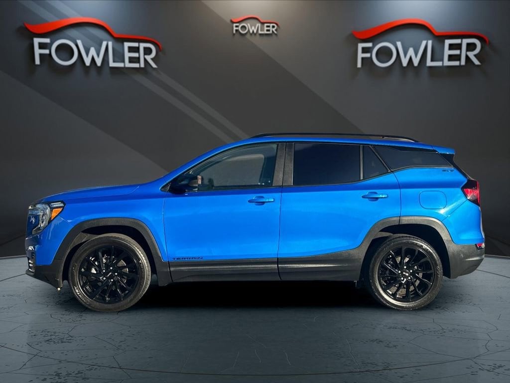 Riptide Metallic 2024 GMC Terrain SLE AWD 9-Speed Automatic 1.5L DOHC AWD, 2 USB Data Ports w/Auxiliary Input Jack, 3.47 Final Drive Axle Ratio, 4-Way Manual Driver's Seat, 4-Way Manual Front Passenger Seat, 4-Wheel Disc Brakes, 4.2 Multi-Color Driver Information Screen, 6 Speakers, 6-Speaker Audio System Feature, ABS brakes, Air Conditioning, Alloy wheels, AM/FM radio: SiriusXM, Auto High-beam Headlights, Auto-dimming Rear-View mirror, Automatic temperature control, Black GMC Center Caps w/Red GMC Lettering, Black Mirror Caps, Bluetooth® For Phone, Brake assist, Bumpers: body-color, Compass, Darkened Front Grille, Delay-off headlights, Driver door bin, Driver vanity mirror, Dual front impact airbags, Dual front side impact airbags, Electronic Stability Control, Elevation Edition, Emergency communication system: OnStar and GMC connected services capable, Four wheel independent suspension, Front anti-roll bar, Front Bucket Seats, Front Center Armrest, Front reading lights, Fully automatic headlights, Heated door mirrors, Illuminated entry, License Plate Front Mounting Package, Low tire pressure warning, Occupant sensing airbag, Outside temperature display, Overhead airbag, Overhead console, Panic alarm, Passenger door bin, Passenger vanity mirror, Power door mirrors, Power steering, Power windows, Preferred Equipment Group 3SA, Premium Cloth Seat Trim, Radio data system, Radio: GMC Infotainment Audio System w/7 Display, Rear anti-roll bar, Rear seat center armrest, Rear window defroster, Rear window wiper, Remote keyless entry, Roof-Mounted Luggage Rack Side Rails, Security system, SiriusXM, Speed control, Speed-sensing steering, Split folding rear seat, Spoiler, Steering wheel mounted audio controls, Tachometer, Telescoping steering wheel, Tilt steering wheel, Traction control, Trip computer, Variably intermittent wipers, Wheels: 17 x 7 Silver Painted Aluminum, Wheels: 19 Gloss Black Aluminum, Wireless Apple CarPlay/Wireless Android Auto, AWD.