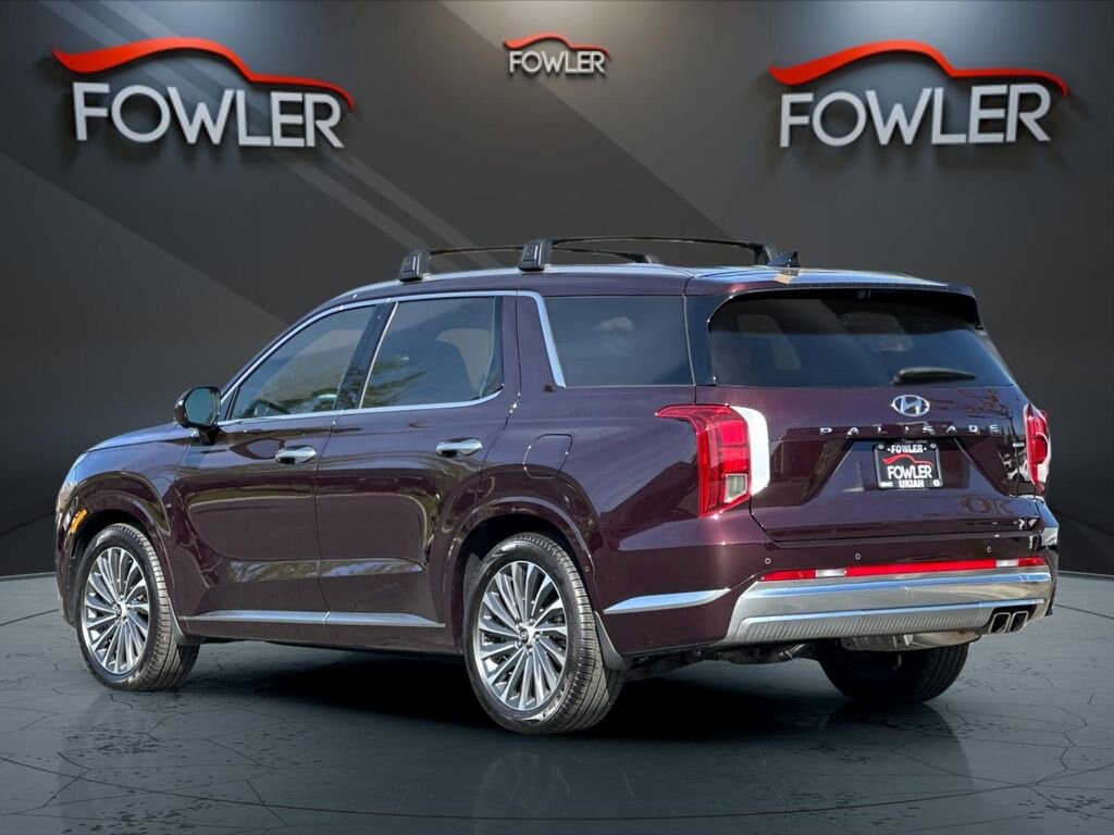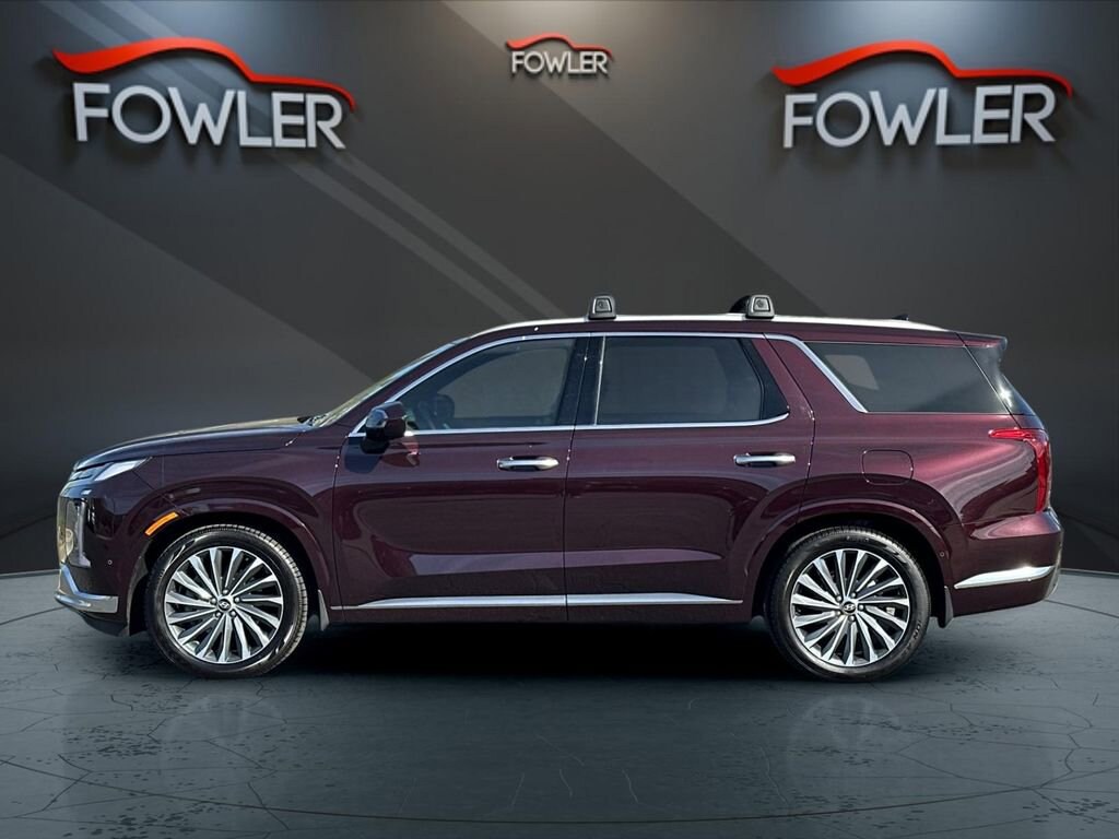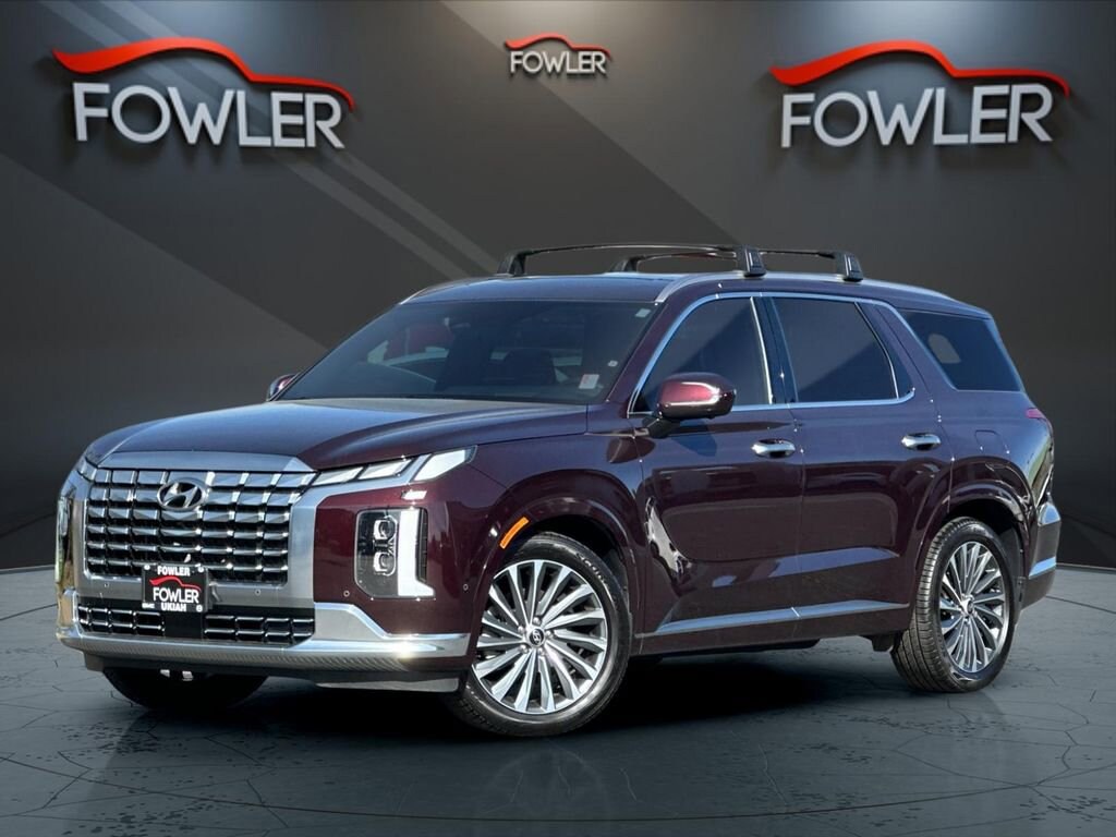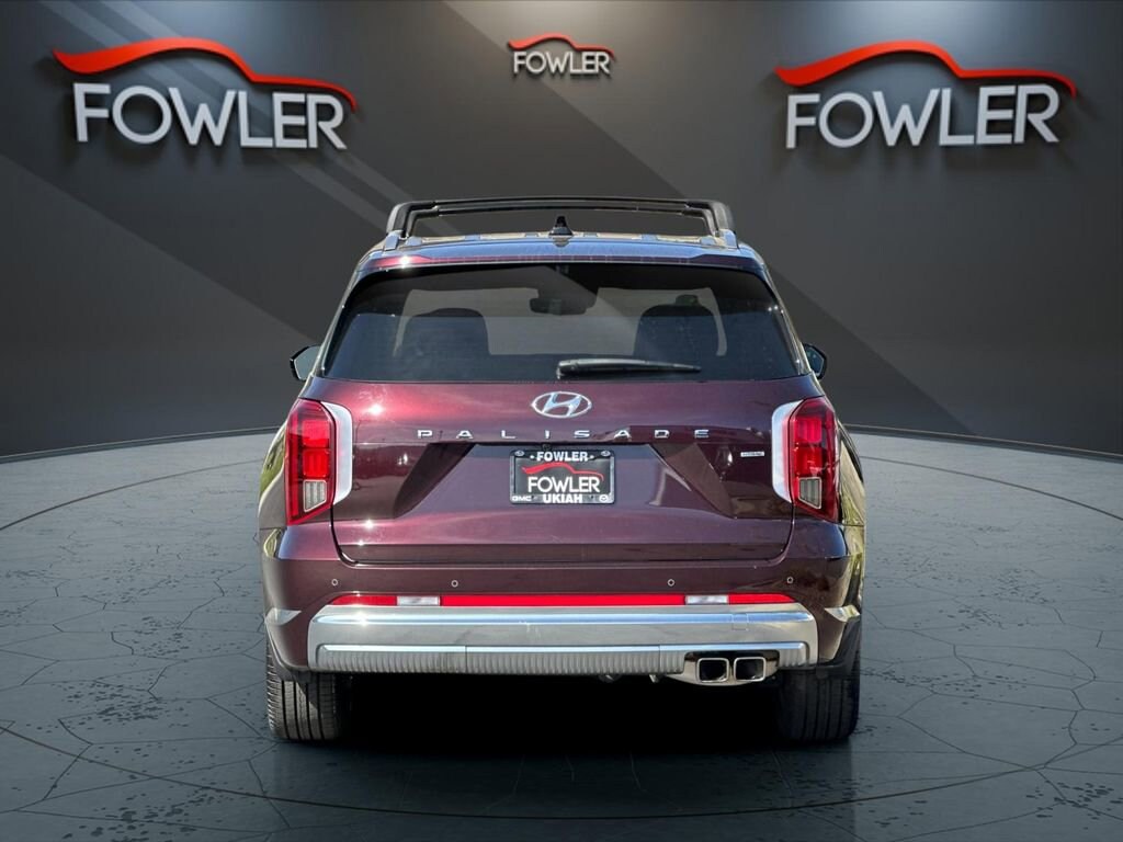 Sierra Burgundy 2024 Hyundai Palisade Calligraphy AWD 8-Speed Automatic with SHIFTRONIC V6 12 Speakers, 3.648 Axle Ratio, 3rd row seats: split-bench, 4-Wheel Disc Brakes, ABS brakes, Air Conditioning, Alloy wheels, AM/FM radio: SiriusXM, Apple CarPlay & Android Auto, Auto High-beam Headlights, Auto-dimming door mirrors, Auto-dimming Rear-View mirror, Auto-leveling suspension, Automatic temperature control, Brake assist, Bumpers: body-color, Cargo Tray, Carpeted Floor Mats, Compass, Delay-off headlights, Driver door bin, Driver vanity mirror, Dual front impact airbags, Dual front side impact airbags, Electronic Stability Control, Emergency communication system, Exterior Parking Camera Rear, First Aid Kit, Four wheel independent suspension, Front anti-roll bar, Front Bucket Seats, Front Center Armrest, Front dual zone A/C, Front reading lights, Fully automatic headlights, Garage door transmitter: HomeLink, harman/kardon® Speakers, Heads-Up Display, Heated & Ventilated Front Bucket Seats, Heated door mirrors, Heated front seats, Heated rear seats, Heated steering wheel, Illuminated entry, Knee airbag, Low tire pressure warning, Memory seat, Mudguards, Navigation System, Occupant sensing airbag, Option Group 01, Outside temperature display, Overhead airbag, Overhead console, Panic alarm, Passenger door bin, Passenger vanity mirror, Power door mirrors, Power driver seat, Power Liftgate, Power moonroof, Power passenger seat, Power steering, Power windows, Premium Nappa Leather Seat Trim, Radio data system, Radio: AM/FM/MP3 Premium Audio System, Rain sensing wipers, Rear air conditioning, Rear anti-roll bar, Rear audio controls, Rear reading lights, Rear side impact airbag, Rear window defroster, Rear window wiper, Reclining 3rd row seat, Remote keyless entry, Roof Rack Cross Rails, Security system, Speed control, Speed-sensing steering, Split folding rear seat, Spoiler, Steering wheel mounted audio controls, Tachometer, Telescoping steering wheel, Tilt steering wheel, Traction control, Trip computer, Turn signal indicator mirrors, Variably intermittent wipers, Ventilated front seats, Ventilated rear seats, Wheel Locks, Wheels: 20 x 7.5J Calligraphy Exclusive Alloy.
