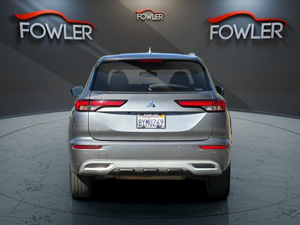 Gray 2022 Mitsubishi Outlander SEL 4WD CVT 2.5L 4-Cylinder DOHC 4WD, 3rd row seats: split-bench, 4-Wheel Disc Brakes, ABS brakes, Air Conditioning, Alloy wheels, AM/FM radio: SiriusXM, Android Auto & Apple CarPlay, Auto High-beam Headlights, Auto-dimming Rear-View mirror, Automatic temperature control, Axle Ratio: 5.694, Brake assist, Bumpers: body-color, Driver door bin, Driver vanity mirror, Dual front impact airbags, Dual front side impact airbags, Electronic Stability Control, Emergency communication system: Mitsubishi Connect w/ 24-month trial, Four wheel independent suspension, Front anti-roll bar, Front Bucket Seats, Front Center Armrest w/Storage, Front dual zone A/C, Front fog lights, Front reading lights, Fully automatic headlights, Headlight cleaning, Heated door mirrors, Heated Front Bucket Seats, Heated front seats, Illuminated entry, Knee airbag, Leather Shift Knob, Leather steering wheel, Low tire pressure warning, Memory seat, Navigation system: Powered by TOMTOM, Occupant sensing airbag, Outside temperature display, Overhead airbag, Overhead console, Panic alarm, Passenger door bin, Passenger vanity mirror, Power door mirrors, Power driver seat, Power Liftgate, Power passenger seat, Power steering, Power windows, Radio data system, Radio: AM/FM 9.0 Navigation w/Smartphone Link, Rain sensing wipers, Rear air conditioning, Rear anti-roll bar, Rear seat center armrest, Rear side impact airbag, Rear window defroster, Rear window wiper, Reclining 3rd row seat, Remote keyless entry, Roof rack: rails only, Security system, Speed control, Speed-Sensitive Wipers, Split folding rear seat, Spoiler, Steering wheel mounted audio controls, Tachometer, Telescoping steering wheel, Tilt steering wheel, Traction control, Trip computer, Turn signal indicator mirrors, Variably intermittent wipers, Wheels: 20 x 8J Two-Tone Alloy, 4WD.
