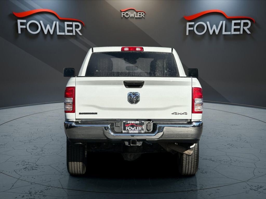 Bright White Clearcoat 2024 Ram 2500 Big Horn 4WD 8-Speed Automatic 6.4L V8 2 Way Rear Headrest Seat, 2nd Row In Floor Storage Bins, 3.73 Axle Ratio, 4 Way Front Headrests, 4-Wheel Disc Brakes, 40/20/40 Split Bench Seat, 4G LTE Wi-Fi Hot Spot, 8.4 Touchscreen Display, 9 Alpine Speakers w/Subwoofer, ABS brakes, Active Noise Control System, Air Conditioning, Anti-Spin Differential Rear Axle, Apple CarPlay, Auto Power-Folding Mirrors, Bed Utility Group, Big Horn IP Badge, Black Exterior Mirrors, Bluetooth Handsfree Phone & Audio, Brake assist, Bumpers: chrome, Center Hub, Center Stack Storage Drawer, Chrome Flat Cab-Length Side Steps, Cloth 40/20/40 Bench Seat, Compass, Connectivity - US/Canada, Delay-off headlights, Driver door bin, Dual front impact airbags, Dual front side impact airbags, Dual Glove Boxes, Electronic Stability Control, Electronically Controlled Throttle, Emergency communication system: SiriusXM Guardian, Exterior Mirrors Courtesy Lamps, Exterior Mirrors w/Heating Element, Exterior Mirrors w/Supplemental Signals, Foam Bottle Insert (Door Trim Panel), Footwell Courtesy Lamp, For Details, Visit DriveUconnect.com, For More Info, Call 800-643-2112, Forward & Reverse Utility Lights, Front anti-roll bar, Front Armrest w/Cupholders, Front Center Armrest w/Storage, Front Center Seat Cushion Storage, Front Fog Lamps, Front License Plate Bracket, Front reading lights, Front Seat Back Map Pockets, Fully automatic headlights, Global Telematics Box Module (TBM), Glove Box Lamp, Google Android Auto, GPS Antenna Input, Heated door mirrors, Illuminated entry, Integrated Center Stack Radio, Integrated Voice Command w/Bluetooth, Leather Wrapped Steering Wheel, LED Bed Lighting, Level 1 Equipment Group, Locking Lower Glove Box, Low tire pressure warning, Manual Adjust 4-Way Driver Seat, Manual Adjust 4-Way Front Passenger Seat, Manufacturer's Statement of Origin, Mirror Running Lights, MOPAR Deployable Bed Step, MOPAR Spray In Bedliner, Occupant sensing airbag, Outside temperature display, Overhead airbag, Overhead console, Panic alarm, ParkView Rear Back-Up Camera, Passenger door bin, Passenger vanity mirror, Power 2-Way Driver Lumbar Adjust, Power Adjust 8-Way Driver Seat, Power Adjust Mirrors, Power Adjustable Convex Aux Mirrors, Power door mirrors, Power Heated Fold Telescope Mirrors, Power steering, Power Telescoping Mirrors, Power windows, Premium Cloth 40/20/40 Bench Seat (DISC), Protection Group, Quick Order Package 2GZ Big Horn, Radio data system, Radio: Uconnect 5 W w/8.4 Display, Rear 60/40 Folding Seat, Rear anti-roll bar, Rear Dome w/On/Off Switch Lamp, Rear Folding Seat, Rear seat center armrest, Rear step bumper, Remote keyless entry, Remote USB Port - Charge Only, Selectable Tire Fill Alert, SiriusXM Radio Service, SiriusXM Satellite Radio, Speed control, Steering Wheel Mounted Audio Controls, Storage Tray, Tachometer, Tilt steering wheel, Tip Start, Tow Hooks, Traction control, Trip computer, Turn signal indicator mirrors, Variably intermittent wipers, Voltmeter, Wheels: 18 x 8.0 Polished Aluminum.