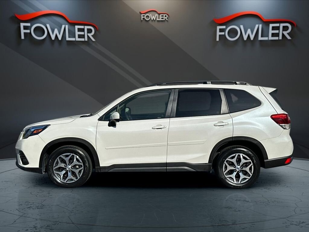 Crystal White Pearl 2023 Subaru Forester Premium AWD Lineartronic CVT 2.5L 4-Cylinder DOHC 16V 3.70 Axle Ratio, 4-Wheel Disc Brakes, 6 Speakers, ABS brakes, Air Conditioning, Alloy wheels, AM/FM radio: SiriusXM, Anti-whiplash front head restraints, Auto High-beam Headlights, Automatic temperature control, Blind Spot Detection w/RCTA & Power Rear Gate, Blind-Spot Detection (BSD), Body Side Molding - Crystal White Pearl, Brake assist, Bumpers: body-color, CD player, Driver door bin, Driver vanity mirror, Driver's Seatback Divided Pocket, Dual front impact airbags, Dual front side impact airbags, Dual USB Charge Ports, Electronic Stability Control, Emergency communication system: STARLINK Safety and Security (Subscription Required), Exterior Parking Camera Rear, EyeSight System, Four wheel independent suspension, Front anti-roll bar, Front Bucket Seats, Front Center Armrest, Front fog lights, Front reading lights, Fully automatic headlights, Heated door mirrors, Heated Front Bucket Seats, Heated front seats, Illuminated entry, Knee airbag, Low tire pressure warning, Multi-Function High Grade Display, Occupant sensing airbag, Outside temperature display, Overhead airbag, Overhead console, Panic alarm, Passenger door bin, Passenger vanity mirror, Power door mirrors, Power driver seat, Power moonroof: Panoramic, Power Rear Gate, Power steering, Power windows, Premium Cloth Upholstery, Radio data system, Radio: Subaru Starlink 6.5 Multimedia Plus System, Rear anti-roll bar, Rear seat center armrest, Rear window defroster, Rear window wiper, Remote keyless entry, Roof rack: rails only, Security system, Speed control, Speed-sensing steering, Split folding rear seat, Spoiler, STARLINK/Apple CarPlay/Android Auto, Steering wheel mounted audio controls, Tachometer, Telescoping steering wheel, Tilt steering wheel, Traction control, Trip computer, Variably intermittent wipers, Wheels: 17 x 7.0 J Black Machine Finish Alloy.Odometer is 2326 miles below market average! 26/33 City/Highway MPGA qualified Ken Fowler Auto Center sales consultant is available by phone to answer any questions you may have about this vehicle. Visit us today to take a test drive.