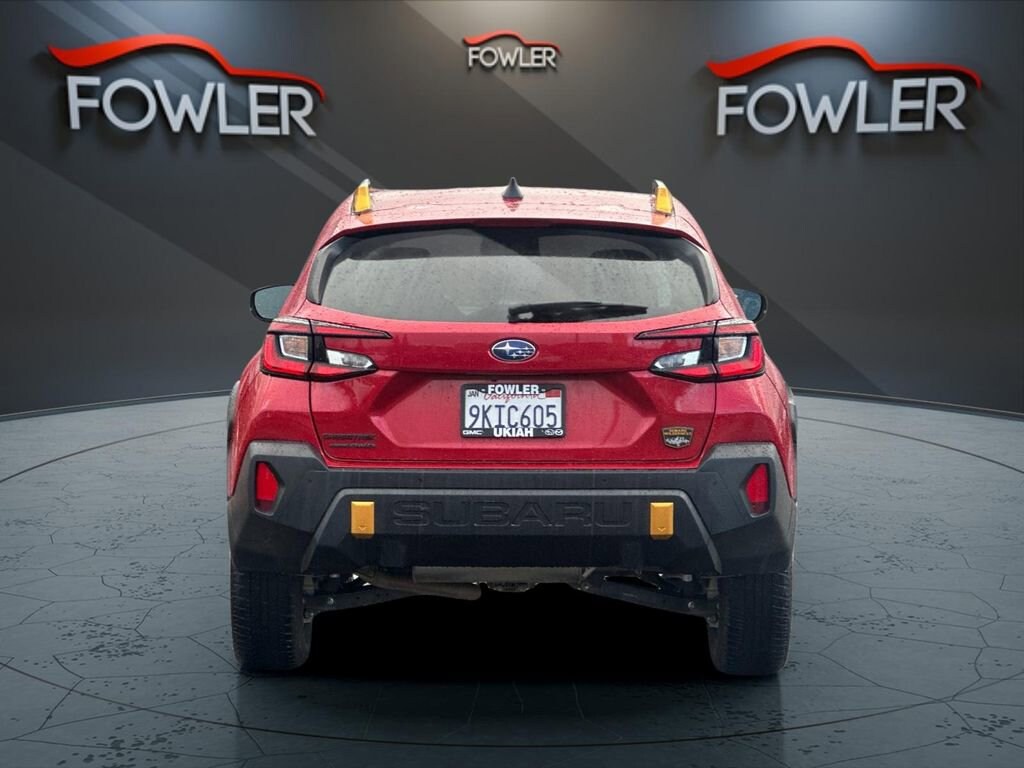 Certified. Lithium Red Pearl 2024 Subaru Crosstrek Wilderness AWD Lineartronic CVT 2.5L 4-Cylinder DOHC 16V Subaru Certified Pre-Owned Certified, 10-Way Power Driver's Seat, 4-Wheel Disc Brakes, 4.11 Axle Ratio, 6 Speakers, ABS brakes, Air Conditioning, Alloy wheels, AM/FM radio: SiriusXM, Anti-whiplash front head restraints, Auto High-beam Headlights, Automatic temperature control, Brake assist, Bumpers: body-color, Driver door bin, Driver vanity mirror, Dual front impact airbags, Dual front side impact airbags, Electronic Stability Control, Emergency communication system: STARLINK Safety and Security (Subscription Required), Exterior Parking Camera Rear, Four wheel independent suspension, Front anti-roll bar, Front Bucket Seats, Front Center Armrest, Front dual zone A/C, Front fog lights, Front reading lights, Fully automatic headlights, harman/kardon Aud & Pwr Moonroof & Pwr Driver Seat, harman/kardon Surround Sound Speaker System, Heated door mirrors, Heated Front Bucket Seats, Heated front seats, Illuminated entry, Knee airbag, Leather Shift Knob, Low tire pressure warning, Occupant sensing airbag, Outside temperature display, Overhead airbag, Overhead console, Panic alarm, Passenger door bin, Passenger vanity mirror, Power door mirrors, Power Moonroof, Power steering, Power windows, Radio data system, Radio: Subaru STARLINK 11.6 Multimedia Plus Sys, Rear anti-roll bar, Rear seat center armrest, Rear window defroster, Rear window wiper, Remote keyless entry, Security system, Speed control, Speed-sensing steering, Split folding rear seat, Spoiler, STARLINK/Apple CarPlay/Android Auto, Steering wheel mounted audio controls, Tachometer, Telescoping steering wheel, Tilt steering wheel, Traction control, Trip computer, Turn signal indicator mirrors, Variably intermittent wipers, Wheels: 17 x 7.0J Matte Black Aluminum Alloy, Wilderness StarTex Upholstery.