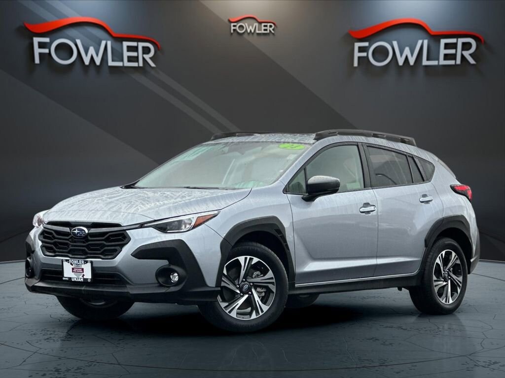 Certified. Ice Silver Metallic 2024 Subaru Crosstrek Premium AWD Lineartronic CVT 2.0L 4-Cylinder DOHC 16V Subaru Certified Pre-Owned Certified, 10-Way Power Driver's Seat, 3.90 Axle Ratio, 4-Wheel Disc Brakes, 6 Speakers, ABS brakes, Air Conditioning, All-Weather Package, Alloy wheels, AM/FM radio: SiriusXM, Anti-whiplash front head restraints, Auto High-beam Headlights, Automatic temperature control, Blind Spot Detection w/Rear Cross-Traffic Alert, Brake assist, BSD/RCTA & Moonrf & All Weather Pkg & Pwr Dr. Seat, Bumpers: body-color, Driver door bin, Driver vanity mirror, Dual front impact airbags, Dual front side impact airbags, Electronic Stability Control, Emergency communication system: STARLINK Safety and Security (Subscription Required), Exterior Parking Camera Rear, Four wheel independent suspension, Front anti-roll bar, Front Bucket Seats, Front Center Armrest, Front dual zone A/C, Front fog lights, Front reading lights, Fully automatic headlights, Heated Exterior Mirrors, Heated Front Seats, Heated Wipers, Illuminated entry, Knee airbag, Low tire pressure warning, Occupant sensing airbag, Outside temperature display, Overhead airbag, Overhead console, Panic alarm, Passenger door bin, Passenger vanity mirror, Power door mirrors, Power Moonroof, Power steering, Power windows, Premium Cloth Upholstery, Radio data system, Radio: Subaru STARLINK 11.6 Multimedia Plus Sys, Rear anti-roll bar, Rear seat center armrest, Rear window defroster, Rear window wiper, Remote keyless entry, Security system, Speed control, Speed-sensing steering, Split folding rear seat, Spoiler, STARLINK/Apple CarPlay/Android Auto, Steering wheel mounted audio controls, Tachometer, Telescoping steering wheel, Tilt steering wheel, Traction control, Trip computer, Turn signal indicator mirrors, Variably intermittent wipers, Wheels: 17 x 7.0J Dark Gray Aluminum Alloy.