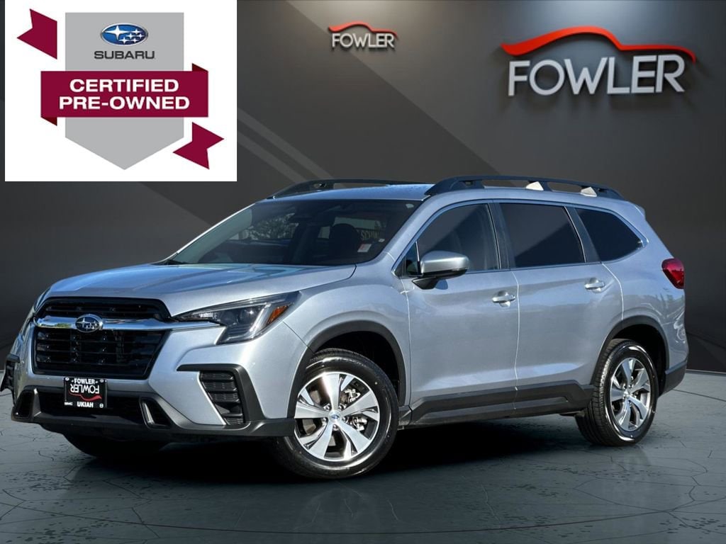 Certified. Ice Silver Metallic 2025 Subaru Ascent Premium AWD Lineartronic CVT 2.4L 4-Cylinder DOHC 16V Subaru Certified, 3rd row seats: bench, 4-Wheel Disc Brakes, 6 Speakers, ABS brakes, Air Conditioning, Alloy wheels, AM/FM radio: SiriusXM with 360L, Apple CarPlay & Android Auto, Auto High-beam Headlights, Auto-dimming Rear-View mirror, Automatic temperature control, Brake assist, Bumpers: body-color, Compass, Delay-off headlights, Driver door bin, Driver vanity mirror, Dual front impact airbags, Dual front side impact airbags, Electronic Stability Control, Emergency communication system: MySubaru Safety (3-year free trial), Exterior Parking Camera Rear, Four wheel independent suspension, Front anti-roll bar, Front Bucket Seats, Front Center Armrest, Front dual zone A/C, Front reading lights, Fully automatic headlights, Garage door transmitter: HomeLink, Heated door mirrors, Heated Front Bucket Seats, Heated front seats, Illuminated entry, Knee airbag, Leather Shift Knob, Leather steering wheel, Low tire pressure warning, Occupant sensing airbag, Outside temperature display, Overhead airbag, Overhead console, Panic alarm, Passenger door bin, Passenger vanity mirror, Power door mirrors, Power driver seat, Power Liftgate, Power steering, Power windows, Radio data system, Radio: Subaru 11.6 Multimedia Plus System, Rear air conditioning, Rear anti-roll bar, Rear reading lights, Rear window defroster, Rear window wiper, Reclining 3rd row seat, Remote keyless entry, Security system, Speed control, Speed-sensing steering, Spill Resistant Coated Cloth Upholstery, Split folding rear seat, Spoiler, Standard Model, Steering wheel mounted audio controls, Tachometer, Telescoping steering wheel, Tilt steering wheel, Traction control, Trip computer, Turn signal indicator mirrors, Variably intermittent wipers, Wheels: 18 x 7.5 J Gray Alloy w/Machine Finish.Recent Arrival! Odometer is 2377 miles below market average! 20/26 City/Highway MPGSubaru Details:* 152 Point Inspection* Transferable Warranty* Vehicle History* Warranty Deductible: $0* Roadside Assistance* Powertrain Limited Warranty: 84 Month/100,000 Mile (whichever comes first) from original in-service date* SiriusXM 3-Month trial subscription, $500 Owner Loyalty coupon & 1 year trial subscription to STARLINKA qualified Ken Fowler Auto Center sales consultant is available by phone to answer any questions you may have about this vehicle. Visit us today to take a test drive.