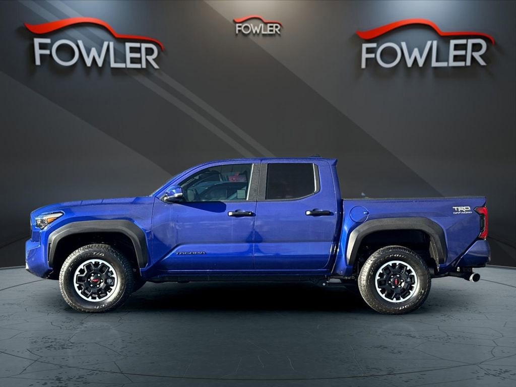 Blue 2025 Toyota Tacoma 4WD 8-Speed Automatic 2.4L 4-Cylinder 4WD, 3.583 Axle Ratio, 4-Wheel Disc Brakes, ABS brakes, Air Conditioning, Alloy wheels, AM/FM radio: SiriusXM, Anti-whiplash front head restraints, Apple CarPlay/Android Auto, Auto High-beam Headlights, Auto-dimming Rear-View mirror, Brake assist, Bumpers: body-color, Driver door bin, Dual front impact airbags, Dual front side impact airbags, Electronic Stability Control, Emergency communication system: Safety Connect (1-year trial), Exterior Parking Camera Rear, Four wheel independent suspension, Front anti-roll bar, Front Bucket Seats, Front Center Armrest, Front fog lights, Front reading lights, Fully automatic headlights, Heated door mirrors, Illuminated entry, JBL Premium Audio, Knee airbag, Low tire pressure warning, Occupant sensing airbag, Outside temperature display, Overhead airbag, Overhead console, Panic alarm, Passenger door bin, Power door mirrors, Power steering, Power windows, Rear step bumper, Rear window defroster, Remote keyless entry, Speed control, Speed-sensing steering, Split folding rear seat, Steering wheel mounted audio controls, Tachometer, Telescoping steering wheel, Tilt steering wheel, Traction control, Trip computer, Variably intermittent wipers, 4WD.